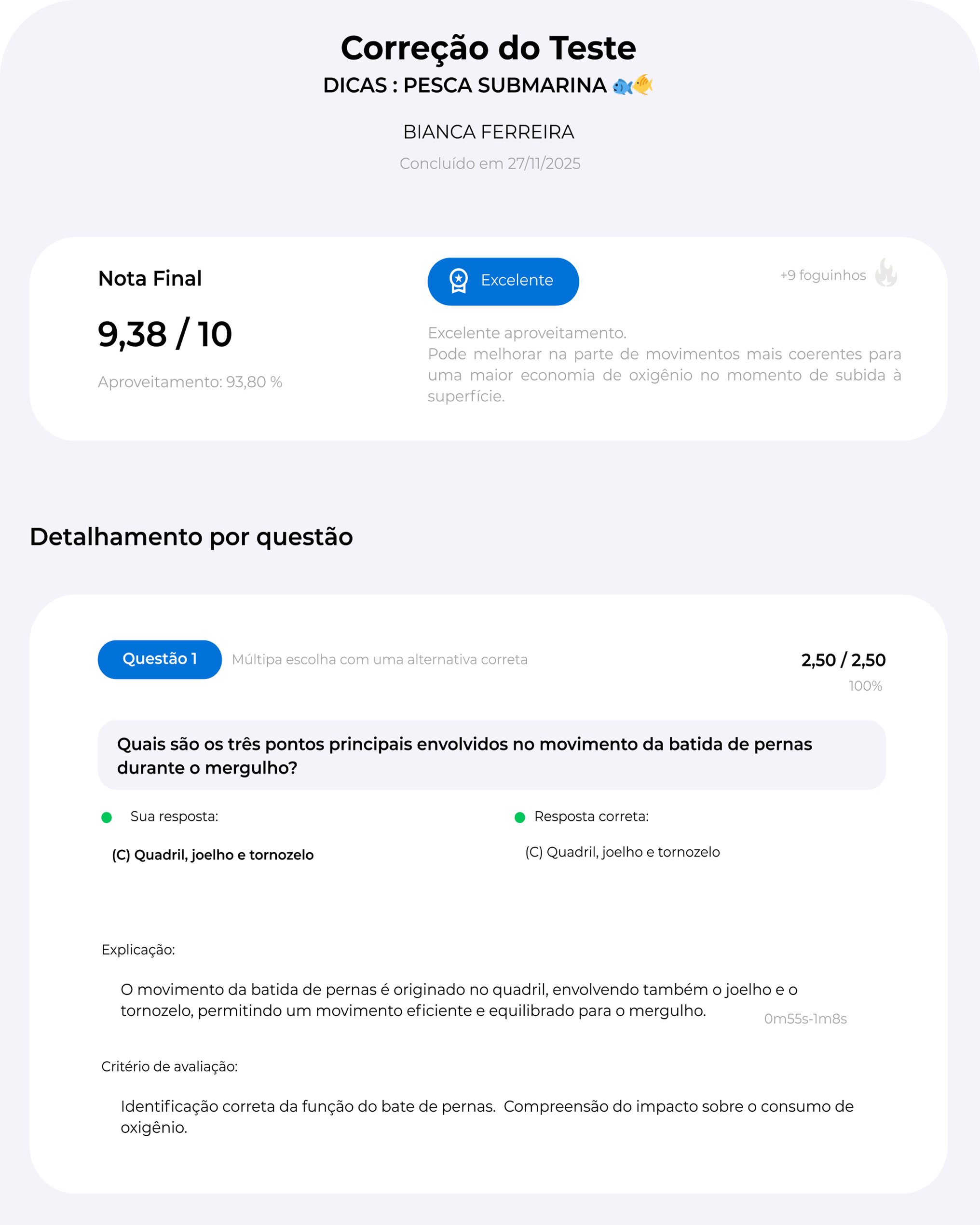 Crio testes em minutos com base nos vídeos que uso nas minhas aulas. A IA entende tudo! E melhor: me permite editar antes de aplicar.