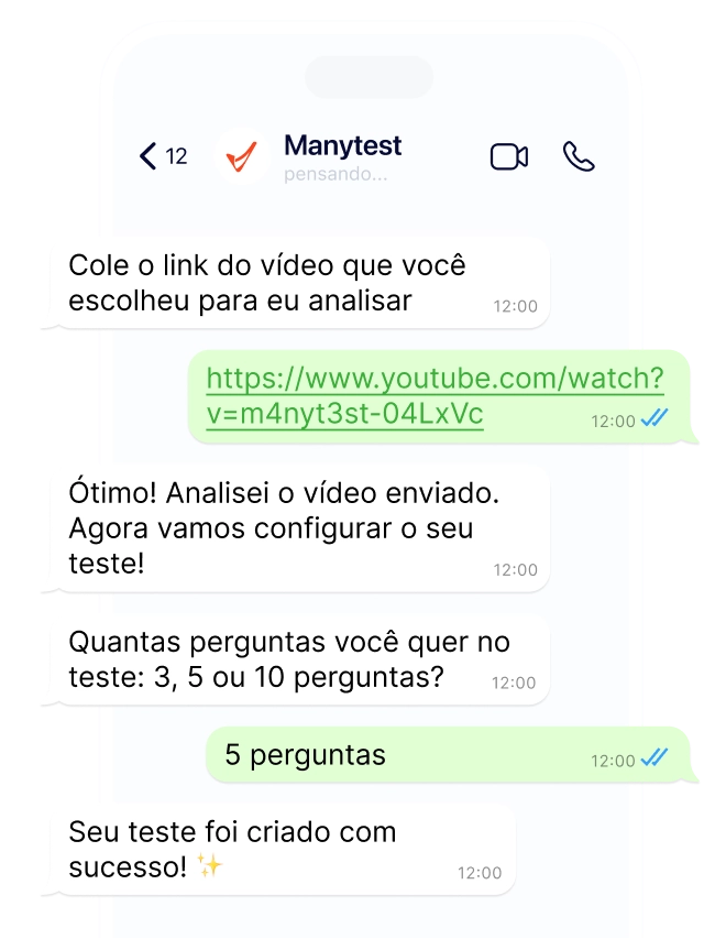 Crie seu primeiro teste gratuitamente em minutos e descubra como a Manytest pode economizar até 8 horas do seu tempo por semana.